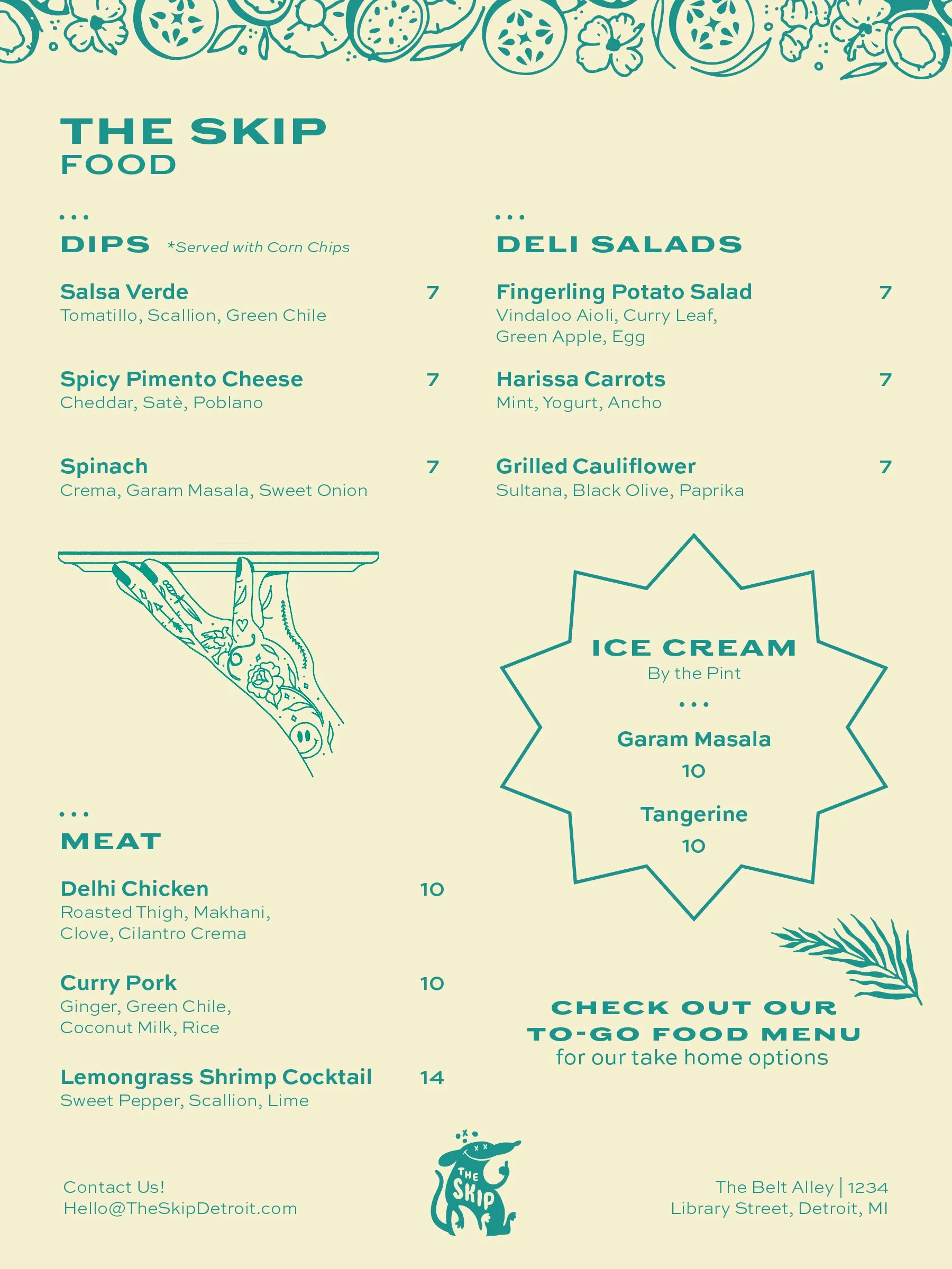 To Go Food Menu The Skip In The Belt Alley Downtown Detroit